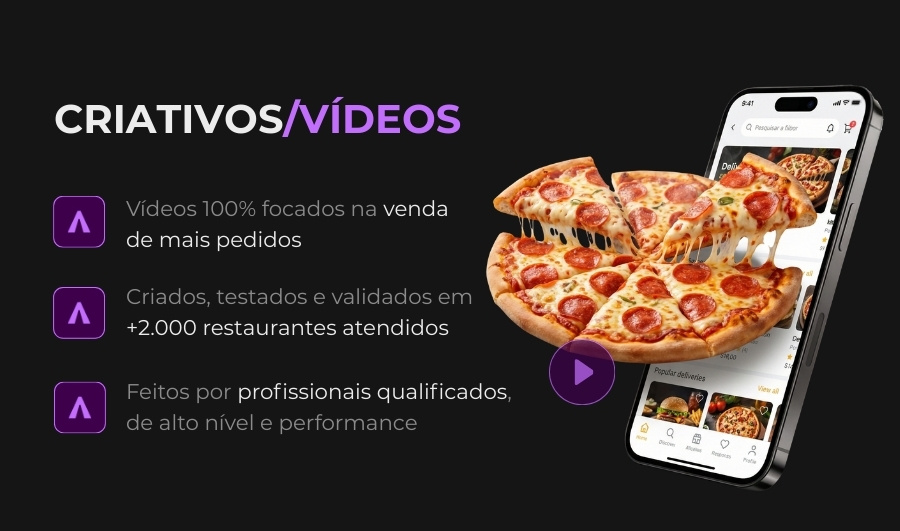 Somos uma assessoria especializada em marketing gastronômico. Ajudamos restaurantes, pizzarias, hamburguerias e negócios de alimentação a vender mais por meio de estratégias como tráfego pago, gestão de iFood, disparo de mensagens, criação de criativos e estruturação do comercial.